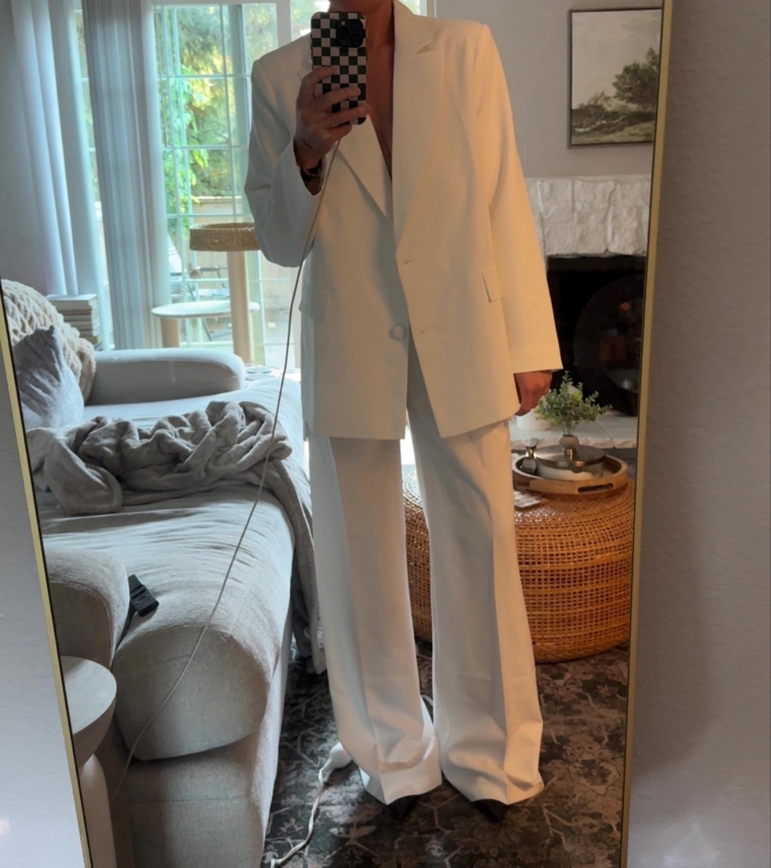 -this suit is suitable for any occasion, whether it's for the office or a first date. It will also pair perfectly with sneakers and a large Shopper bag